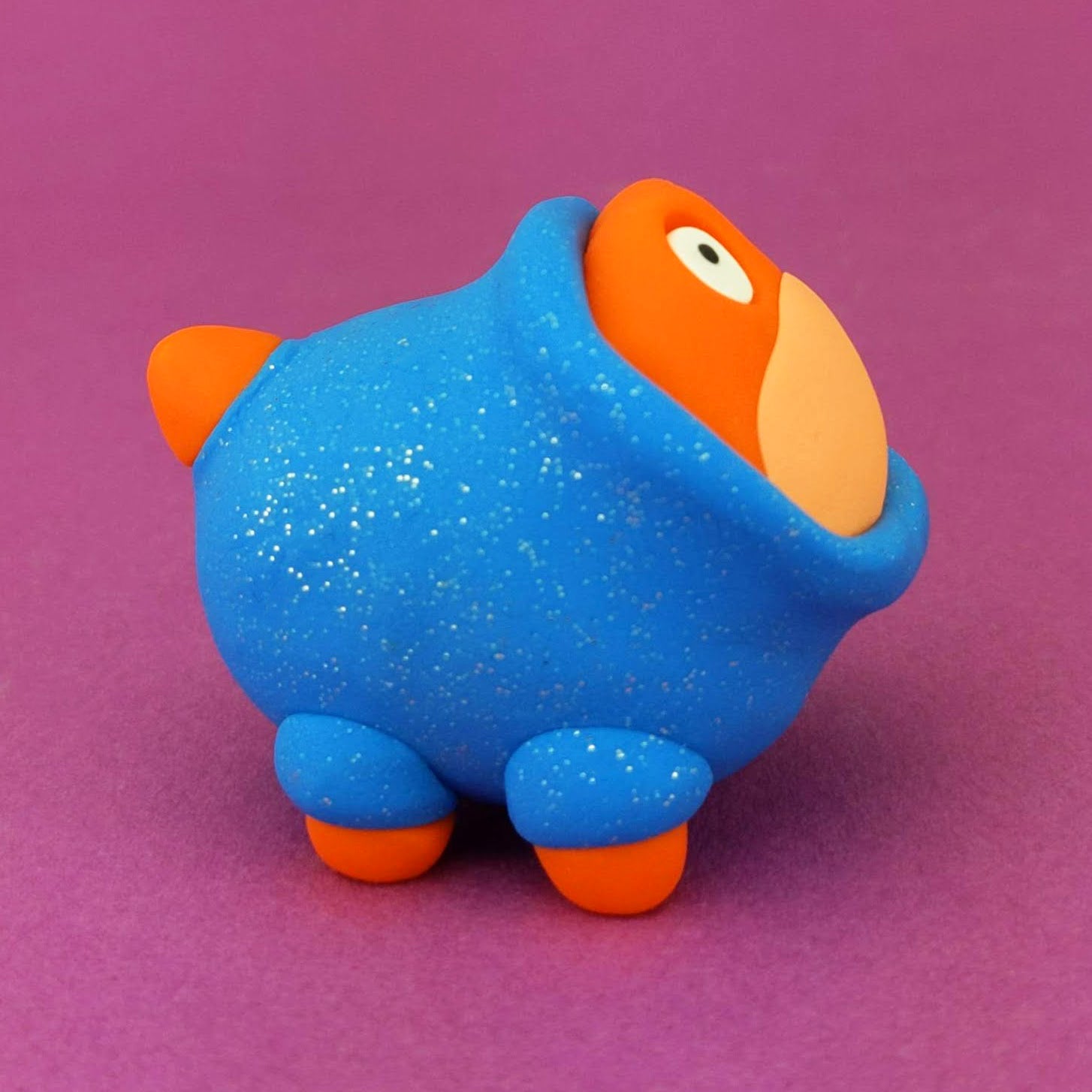 Suburban Salamander is handmade of polymer clay with a tightly wrapped tin foil ball for insides. This keeps him nice and light so he's more likely to bounce than break should he ever decide to actually try to work up a sweat and go jogging or something. He's also got the Nugs logo branded on his backside so you'll always know who his stylist is.